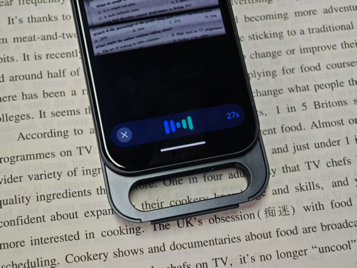 为了试试这个“宽笔头”好不好用,我特意用各种不同的速度和角度扫描试了试,发现有道SpaceOne在扫描同时屏幕上会同步出现相应的句子,即便快速用笔划过纸面,扫描的结果也不会有很大出入。