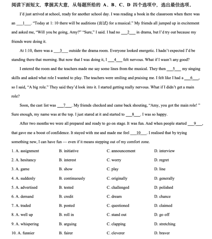 至于英语的话,这次选的是一道来自“2024年高考北京卷英语试题”的完型填空题。